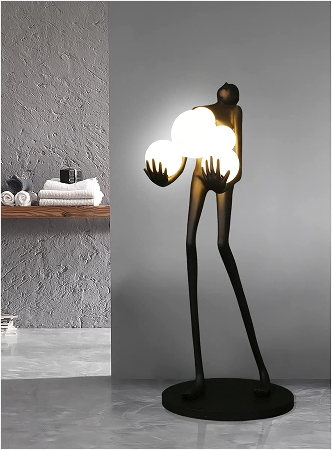BLACK LADY STATUE HOLDING LIGHT GLOBES FLOOR LAMP