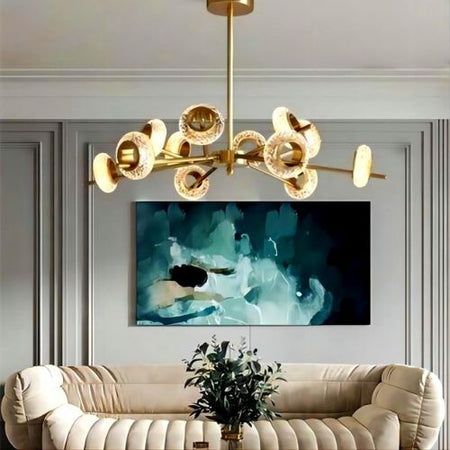 Crown Crystal Modern Chandelier in brass antique finish with in built led with 12 light