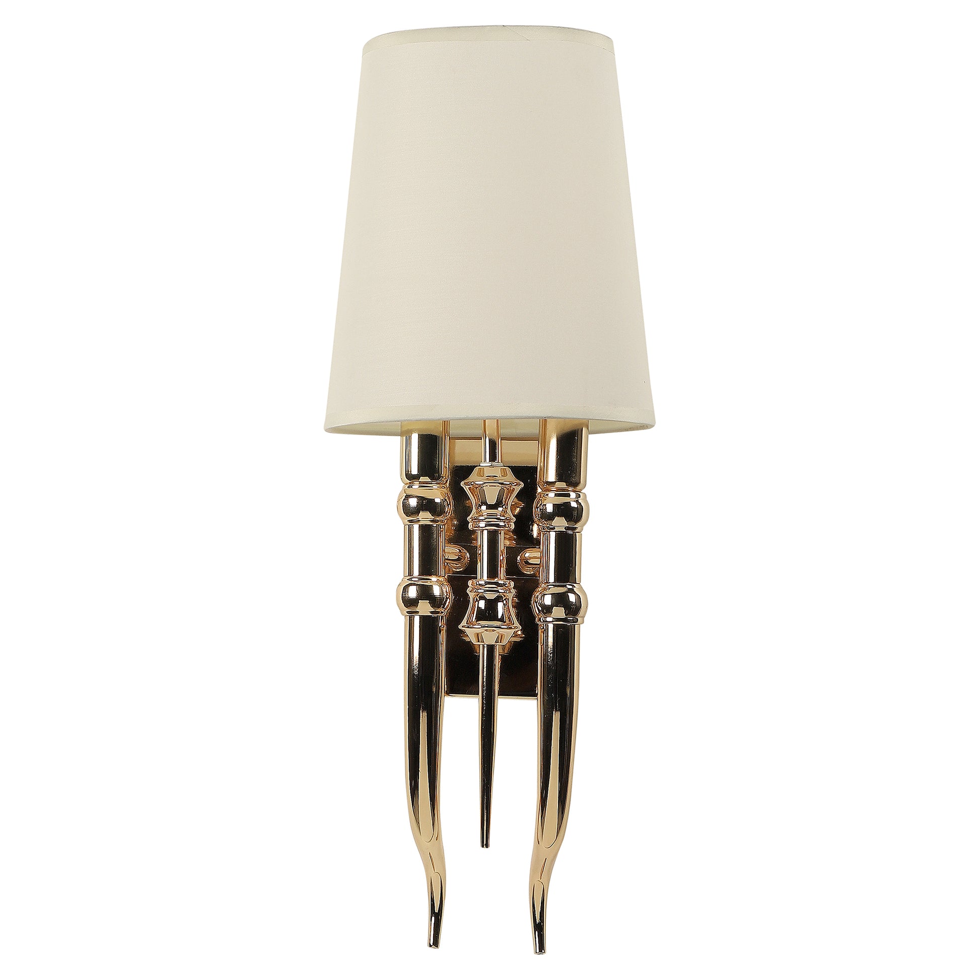 FLUGBO MODERN WALL LIGHT IN CHROME FINISH WITH WHITE FABRIC SHADE.