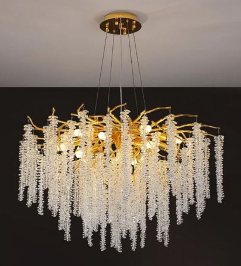 Long Crystal Strings: The long crystal strings of the Luciano Chandelier create a mesmerizing play of light and shadow, casting a soft, ethereal glow that transforms your room into a realm of enchantment.