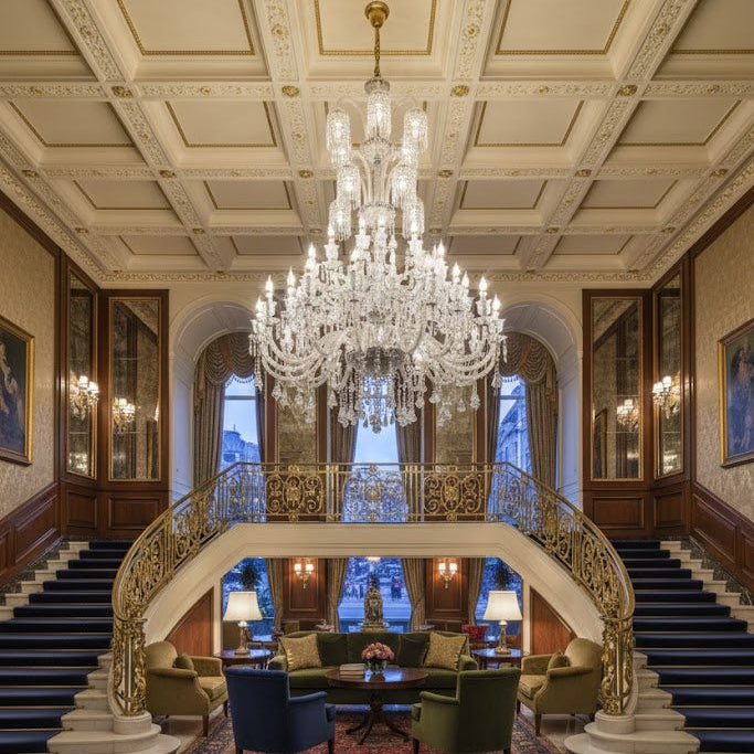 Illuminate your surroundings with brilliance and beauty. The Austrian Crystal Double Height Chandelier casts a mesmerizing display of light, refracting through the meticulously placed crystals, creating a dazzling ambiance that transforms any space into a palace of luxury.