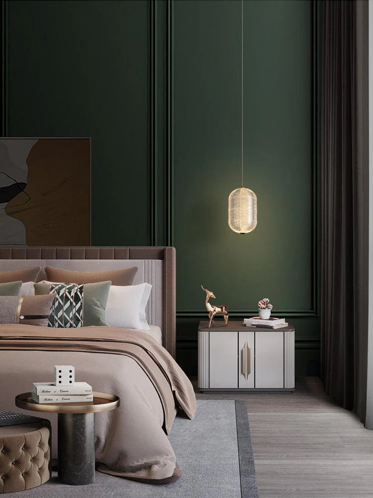 Modern Crystal Mesh Pendant Light – Elegant Bedside Hanging Lamp