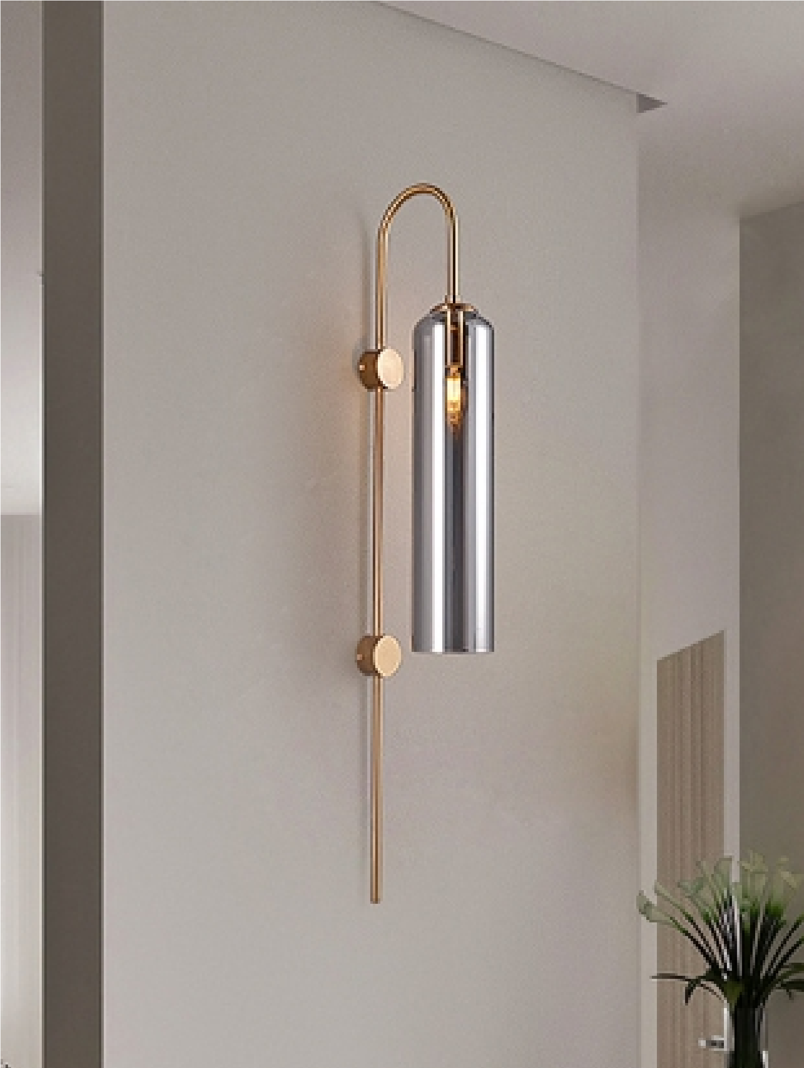 MODERN LONG WALL LIGHT IN GOLD ANTIQUE FINISH WITH LONG CLEAR GLASS.