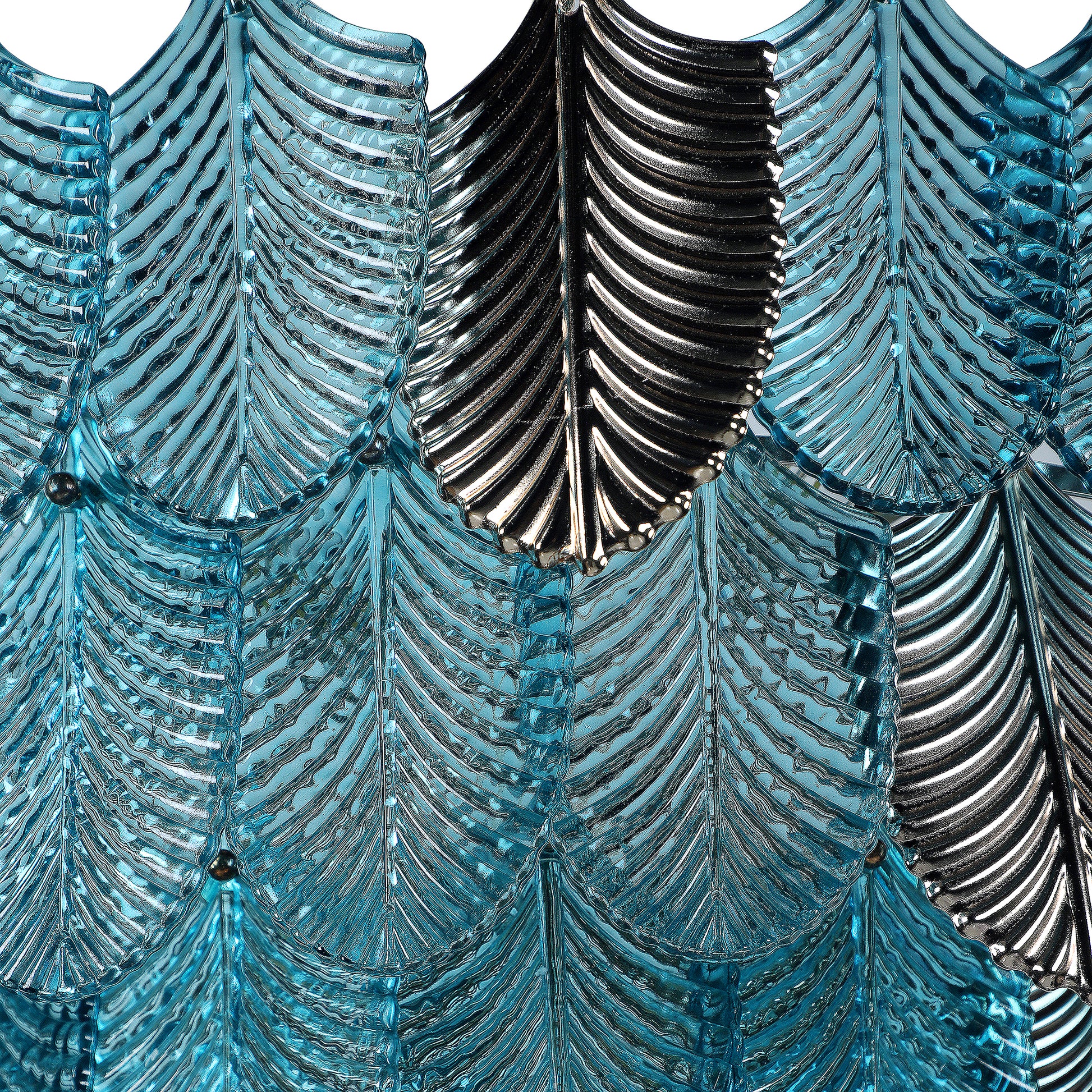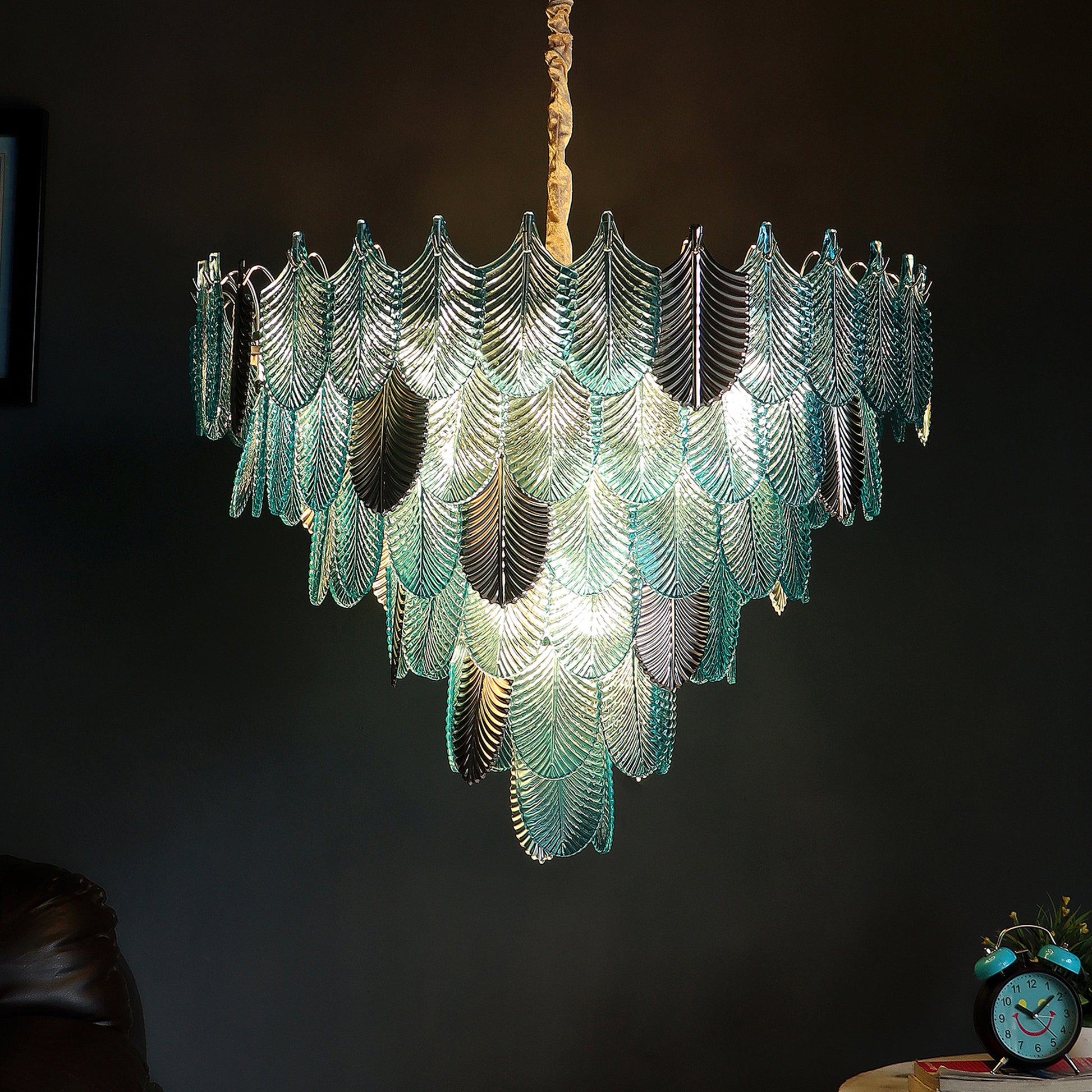 ORREN BULE & GOLD GLASS CHANDELIER IN GOLD FINISH : We bring you this season's newest showstopper. Beautiful teal blue-green & gold glass petals come together to create magic like never before! Take home this stunner & create some Milan style magic!
