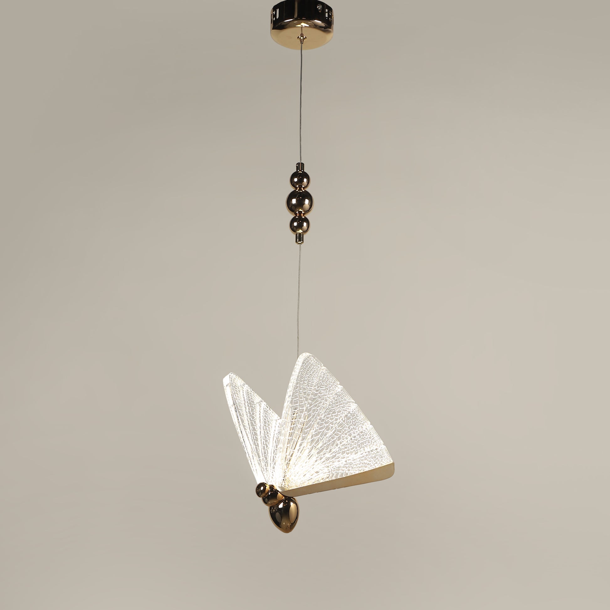 SINGLE BUTTERFLY HANGING PENDENT IN GOLD FINISH WITH IN BUILT LED.