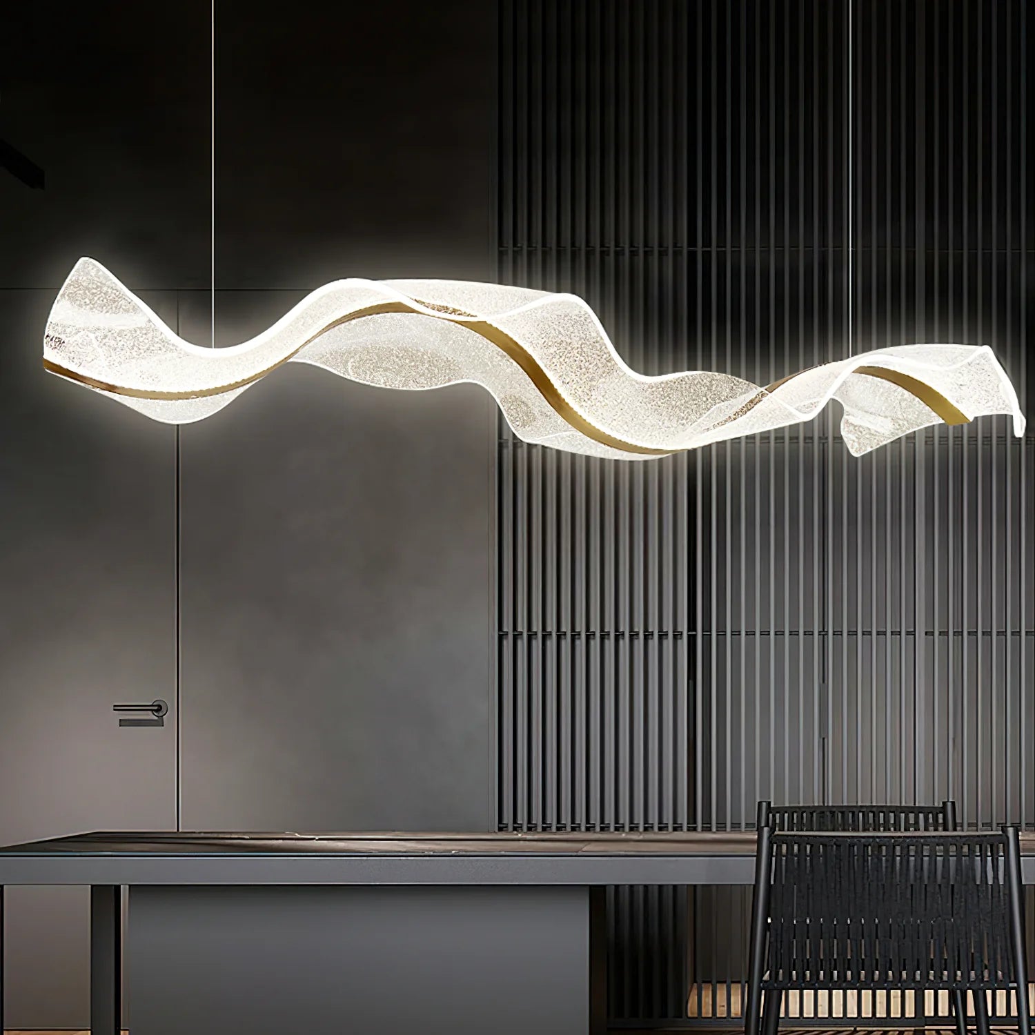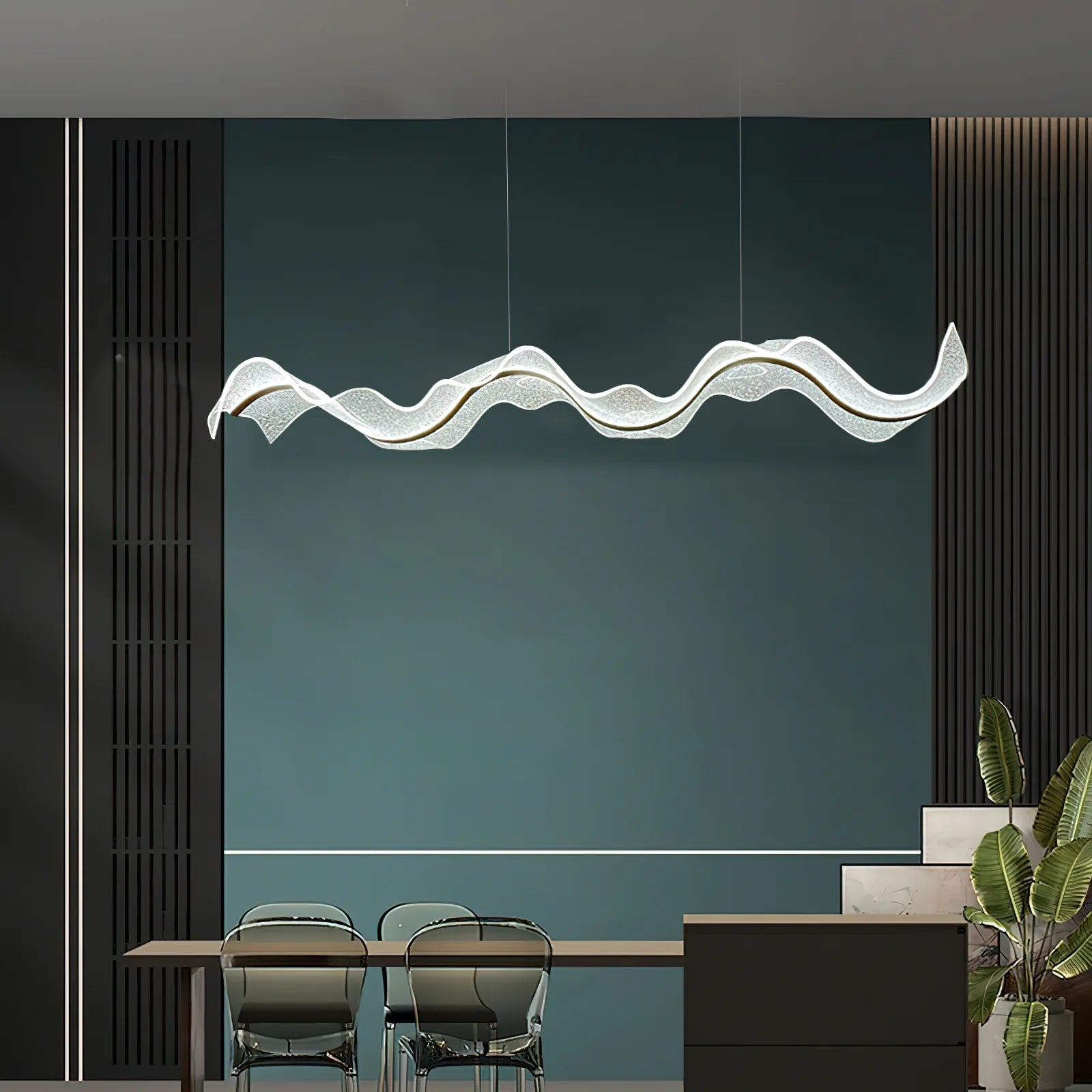 Wave Chandelier featuring minimalist design and unique LED wave lighting technology, this piece of décor creates a warm and inviting atmosphere.
