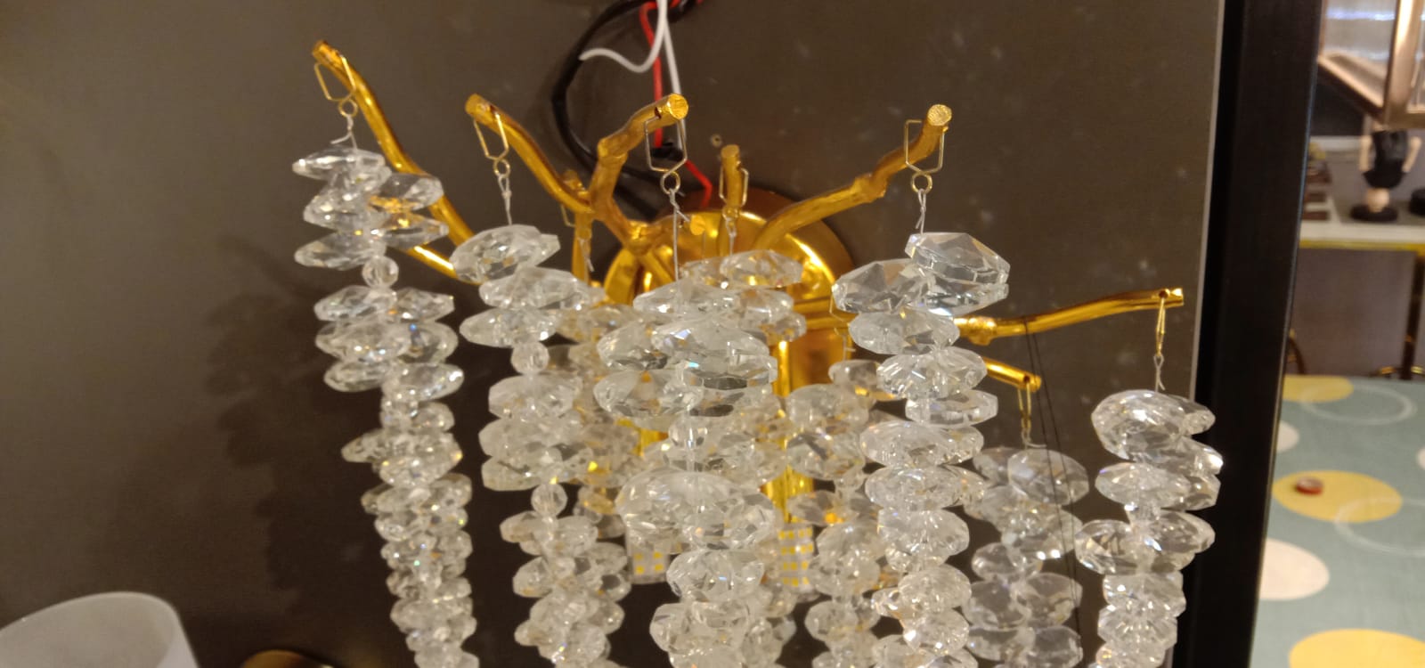 Tripping Modern Wall light in Matt gold with long designer crystal drops.